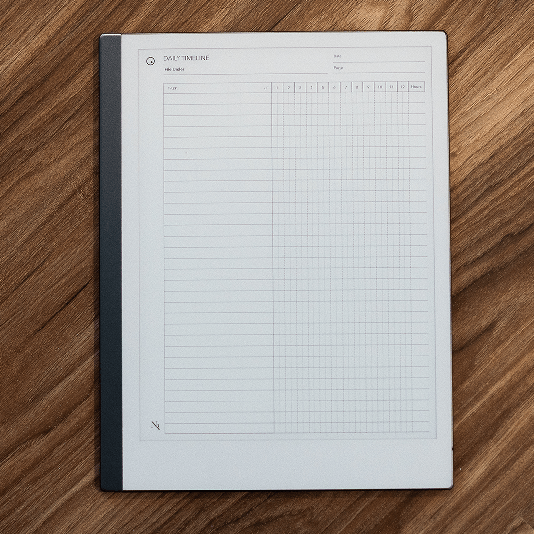 A PDF functions like a multi-page notebook, typically featuring fixed navigation. This means you cannot add custom templates to additional pages after creation. In contrast, PNGs serve as templates for alternating page backgrounds throughout your notebook, offering more flexibility to build it according to your needs. PDFs can be imported using the app available at remarkable.com, while PNGs need to be installed using either the Template Installer App or our Desktop Manager App (Binder).