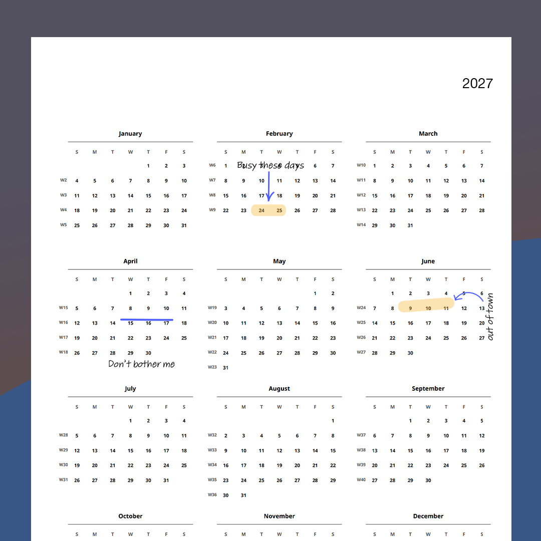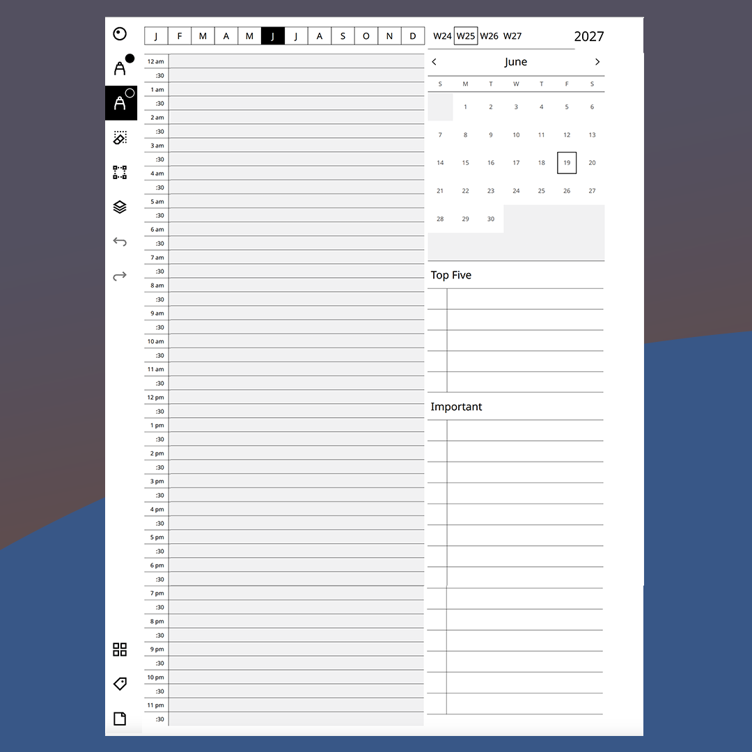 Unlock your best year yet with the 2027 digital planner — a superior alternative to reMarkable Method planners. Translated into 6 languages and aligned to regional calendar formats, this PDF starts on the correct day of the week and gives you full control over your schedule. Use the year overview for quick jumps, day views for fast scrolling, and timeblocks to structure every hour. The landscape calendar layout ensures you never run out of space.