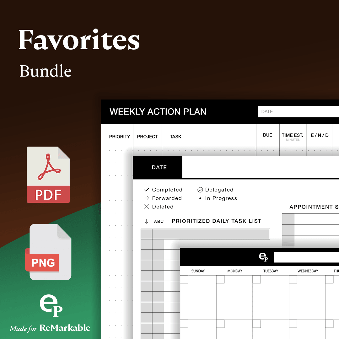 A PDF functions like a multi-page notebook, typically featuring fixed navigation. This means you cannot add custom templates to additional pages after creation. In contrast, PNGs serve as templates for alternating page backgrounds throughout your notebook, offering more flexibility to build it according to your needs. PDFs can be imported using the app available at remarkable.com, while PNGs need to be installed using either the Template Installer App or our Desktop Manager App (Binder).