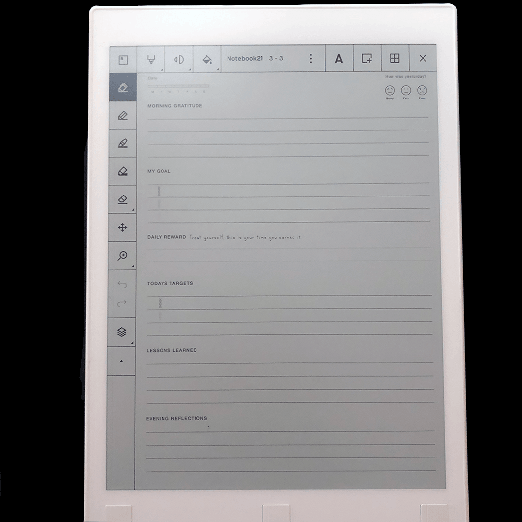 This reMarkable template was designed to help you live a more tranquil, productive and harmonious life. Take a breath to reflect, specify your objectives and build a plan. Cut out disruptions and learn how to hold sway over your day with this efficient step-by-step guide.