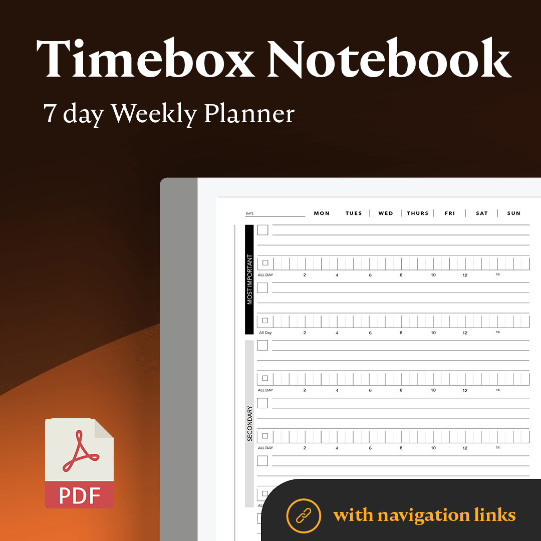 L'agenda settimanale Timebox/time block è un taccuino PDF progettato specificamente per i tablet reMarkable 2.