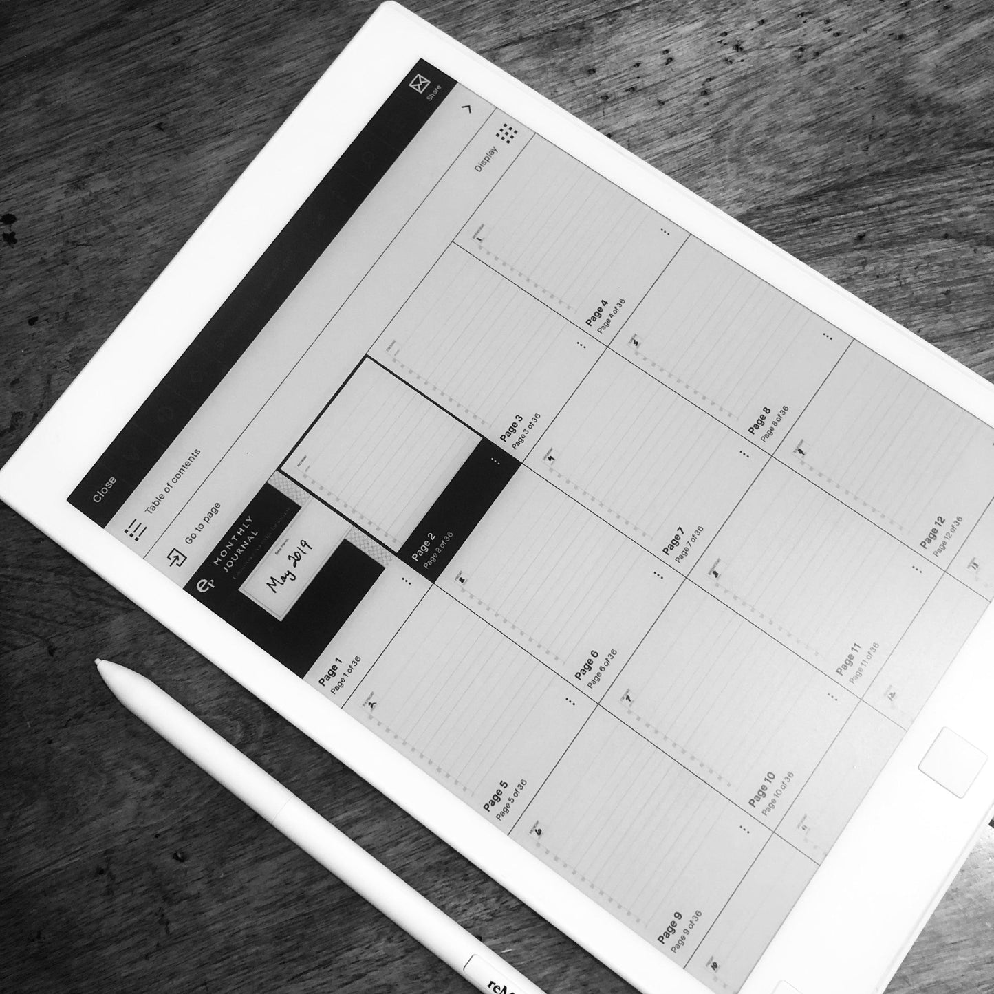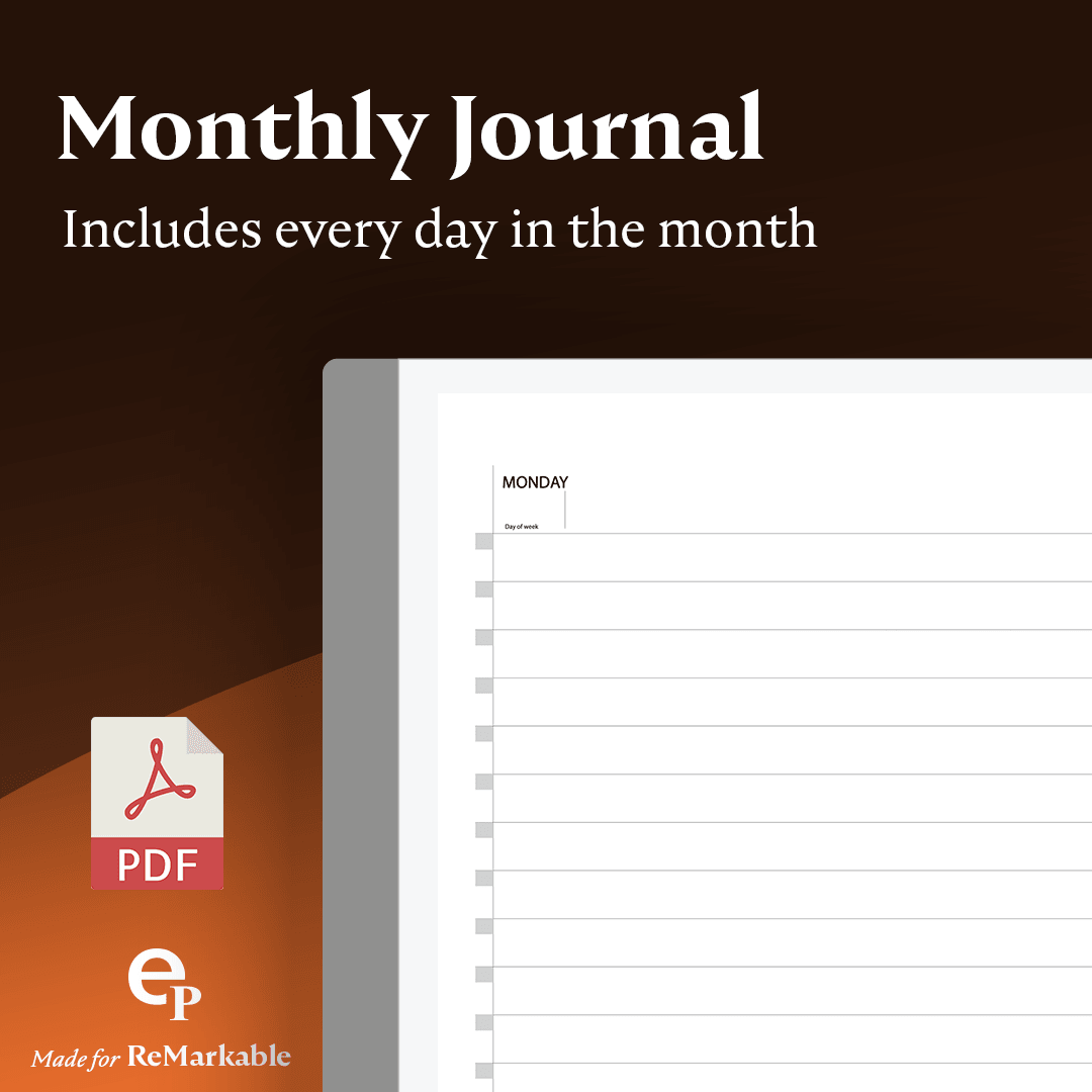 The Monthly Journal promotes organized living. It includes all of the days of the month. Add a theme to the cover page that is visible in your “My Files” screen on your reMarkable Tablet which lets you specify the month of the document.