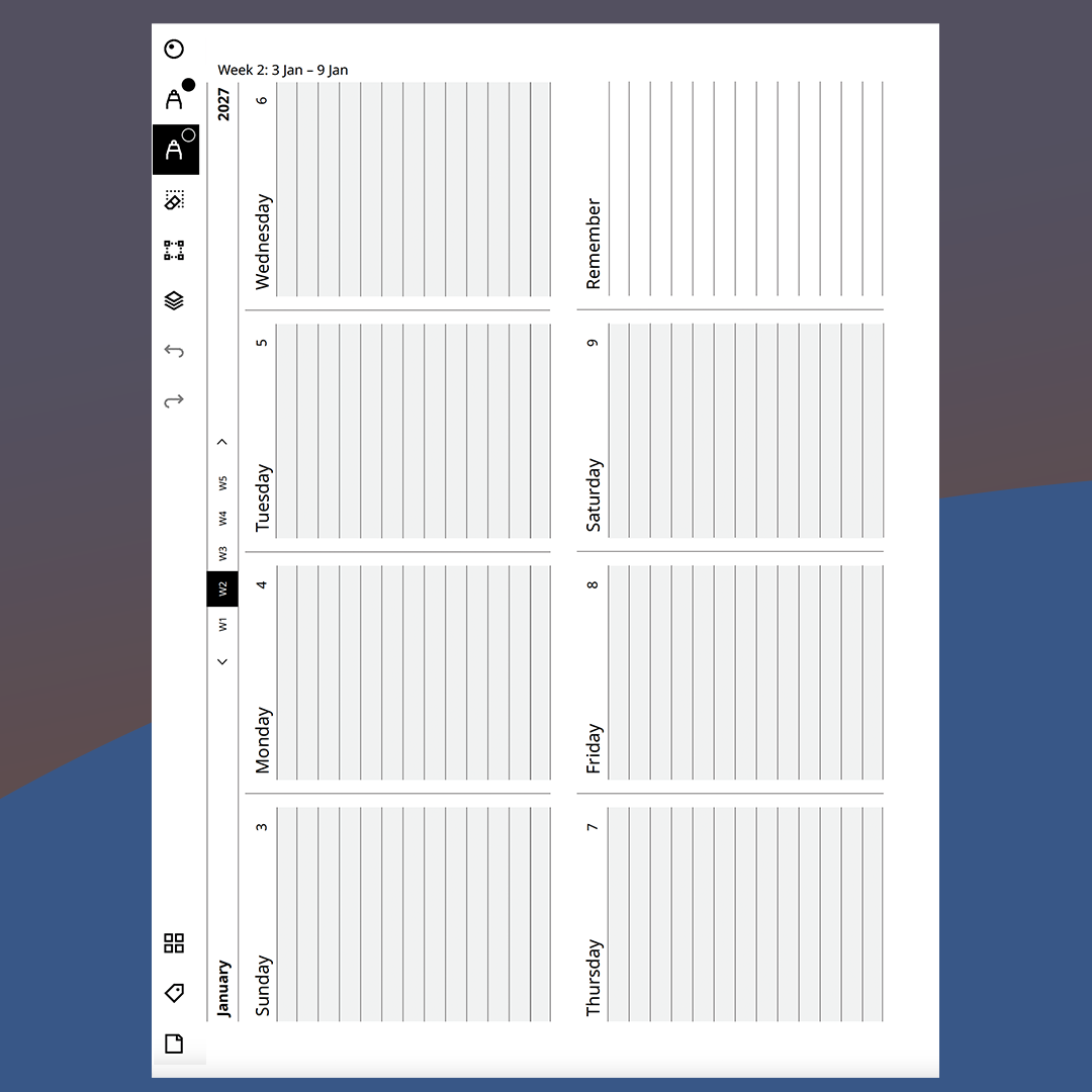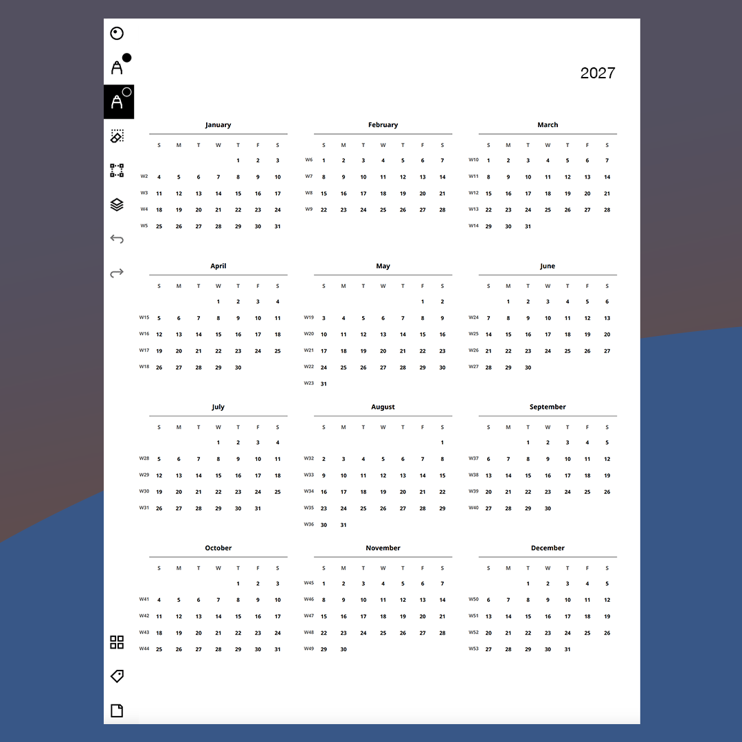 Unlock your best year yet with the 2027 digital planner — a superior alternative to reMarkable Method planners. Translated into 6 languages and aligned to regional calendar formats, this PDF starts on the correct day of the week and gives you full control over your schedule. Use the year overview for quick jumps, day views for fast scrolling, and timeblocks to structure every hour. The landscape calendar layout ensures you never run out of space.