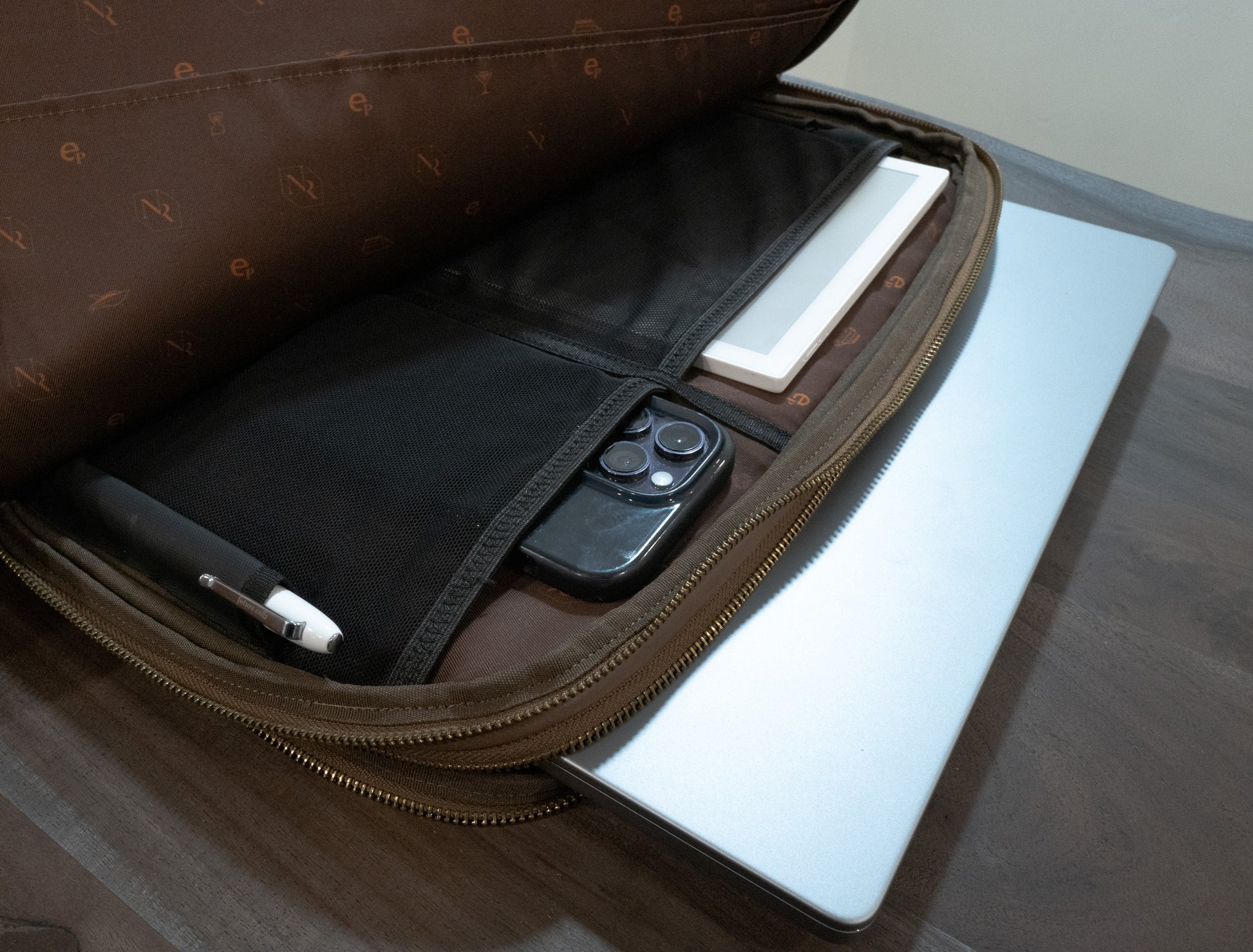 With ample space to comfortably hold a large laptop, your remarkable tablet, and more, it's the ultimate companion for your daily adventures. Plus, its smart design allows it to effortlessly attach to the back of your luggage, making travel a breeze.
