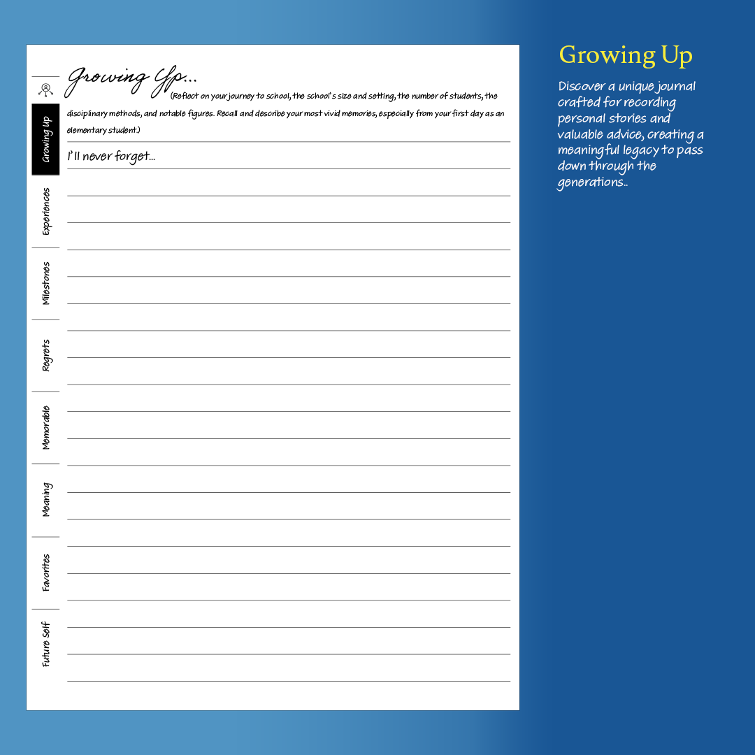 Whether you're looking to reflect on life’s lessons, preserve your family's history, or pass down wisdom to future generations, this planner is your perfect companion. It's built to last, ensuring that your stories, once penned, become a treasured legacy for your descendants to cherish and learn from.